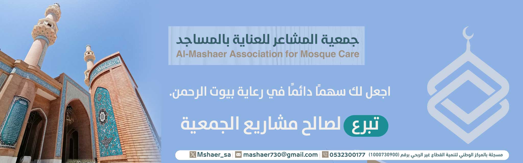 جمعية أهلية متخصصة في العناية بالمساجد، تسعى لتحقيق استدامة المساجد وتجهيزها وصيانتها بكفاءة وجودة.